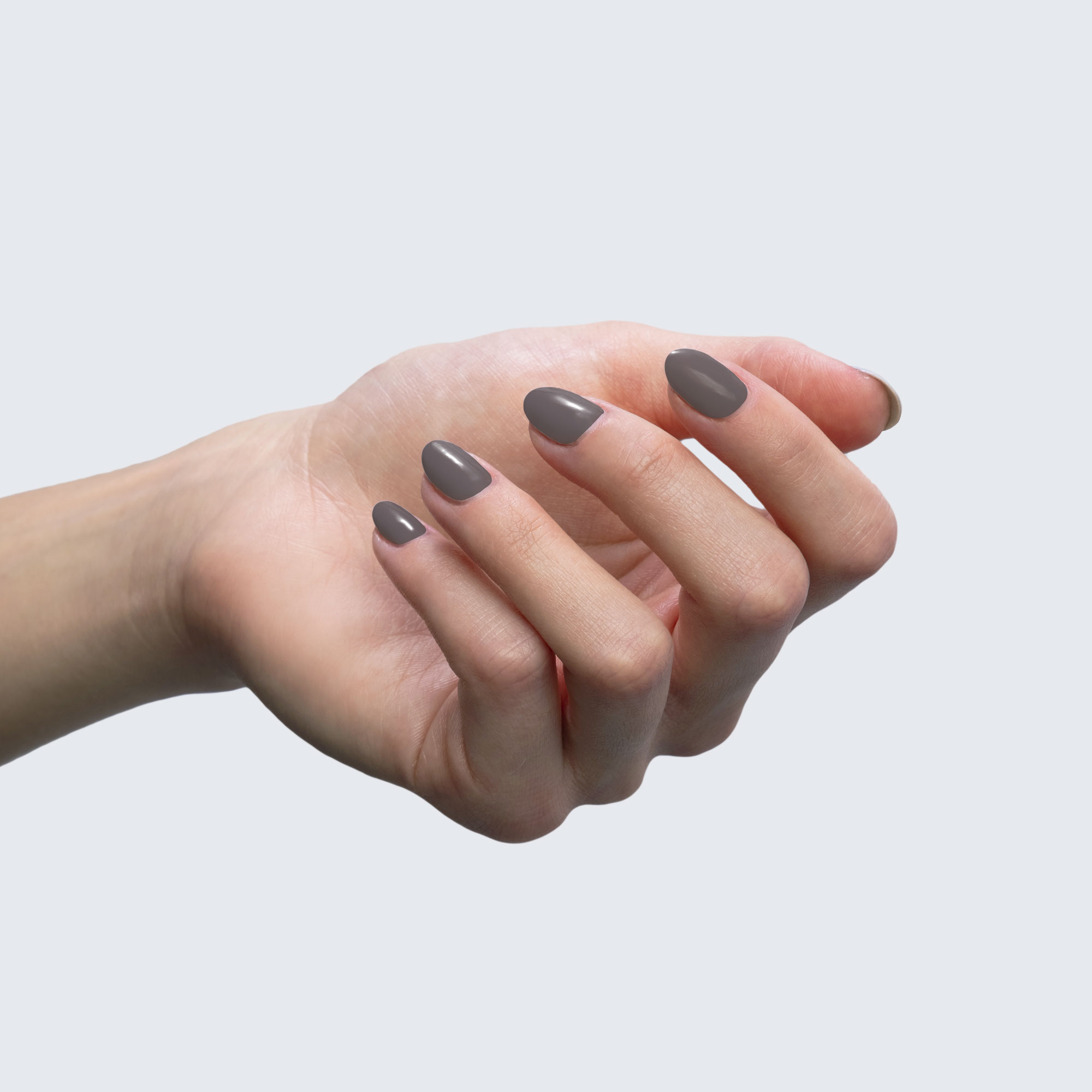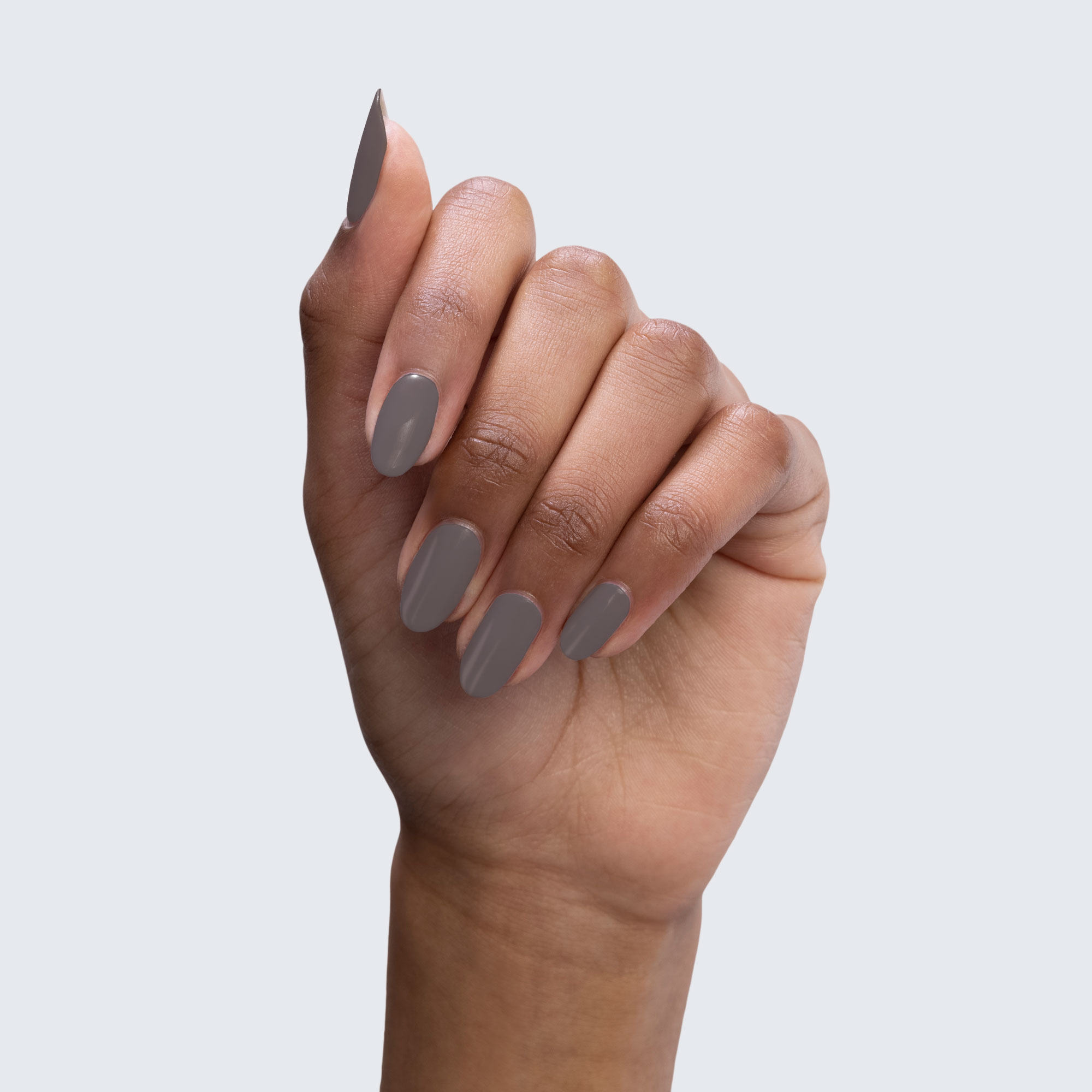 Taupe grey. Medium-dark. Opaque. Warm undertone.